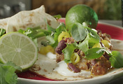 2. 양고기는 얆게 편썬후 소금, 후추, 민트가루로 간을 한다.